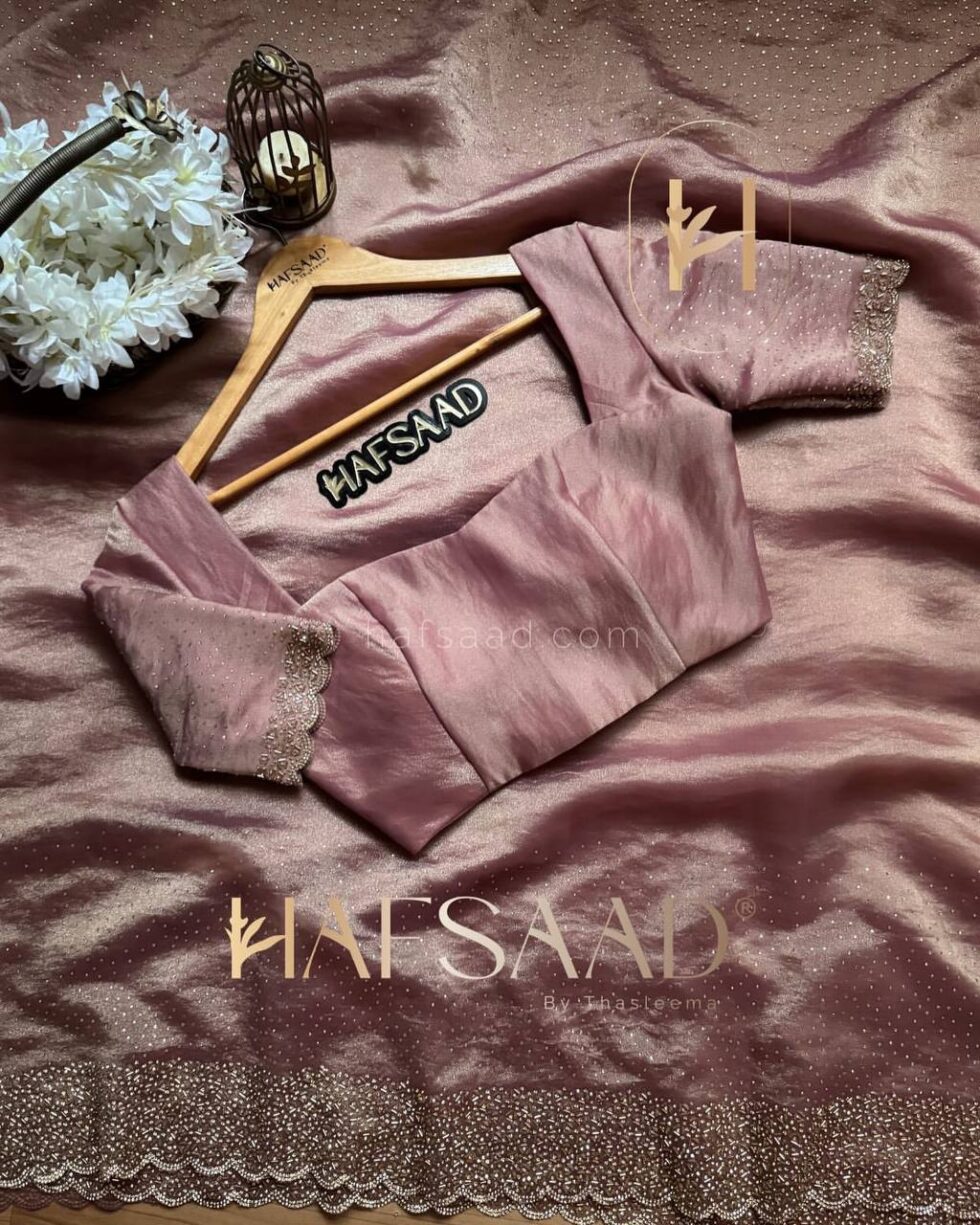 Experience celestial elegance with Design No. NC-5434, a stunning Space Silk saree adorned with original Jarkhan Diamond work, mirroring a million stars. The matching Space Silk blouse also features exquisite Jarkhan Diamond embellishments, ensuring a cohesive and dazzling look. Perfect for sangeets or cocktail parties, this designer saree will effortlessly elevate your style. Available at an unbeatable price of Rs. 6,299.00/-. Book your order fast for this flawless masterpiece.